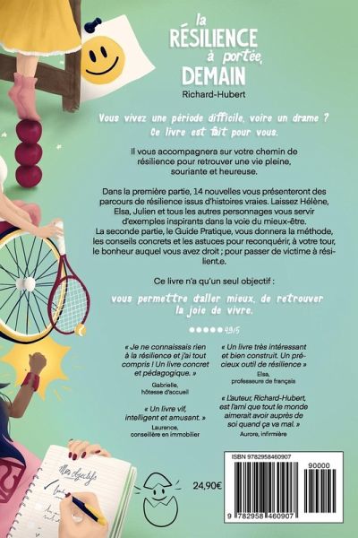 Vous traversez une période difficile ? Ce livre est un refuge et un guide. 14 histoires inspirantes pour vous redonner espoir, et une méthode simple pour retrouver la joie de vivre. Un compagnon de route pour sortir du tunnel et reprendre votre vie en main. Quand la vie s'assombrit, nous avons tous besoin d'un souffle. D'un repère. D'une lumière. Ce livre est né pour cela. Une première partie qui apaise et inspire Dans les 14 nouvelles inspirées d'histoires vraies, vous découvrirez des femmes, des hommes, des adolescents qui ont vécu l'impensable - et qui ont pourtant trouvé la force d'avancer. Vous y croiserez, notamment: * une mère et son fils qui transforment une blessure en lien indestructible ("Je t'aime parce que tu as fait de tout ce que tu as vécu des forces, des paliers, des piliers...") * un adolescent bouleversant dans une salle de classe, prêt à tracer son propre chemin de résilience ("Kylian attendait son tour avec impatience...") Ces récits sont écrits pour: * vous apaiser * vous inspirer * vous faire respirer autrement * vous rappeler que "c'est possible" Vous n'êtes pas seul.e. Et vous pouvez, vous aussi, aller mieux. Une deuxième partie qui donne des clés concrètes Après les émotions, place à l'action. La seconde partie du livre est un guide pratique de résilience, clair, structuré, accessible à tous - même (et surtout) lorsque l'on se sent au plus bas. Vous comprendrez pourquoi les épreuves nous enferment peu à peu dans une prison intérieure: ("Vivre un drame... nous enferme dans une vie étriquée... une prison dont les murs se resserrent...") La résilience à portée demain -... Puis vous découvrirez comment en sortir grâce à un parcours en 5 piliers: 1. Changer son mindset 2. Se donner des autorisations nouvelles 3. Ne pas rester seul(e), se faire aider 4. Se transcender 5. Entrer en As-sistance et aider à son tour Chaque pilier est accompagné d'exemples, d'exercices et de conseils concrets. Ce n'est pas un livre théorique: c'est un manuel d'action. Une vision de la résilience simple, humaine et libératrice La résilience n'est pas un concept abstrait réservé aux experts. C'est un mouvement intérieur universel. Comme l'explique l'auteur: ("Être résilient, c'est sortir du Cercle Vicieux In-sister ➞ Ré-sister pour pouvoir Ex-ister.") La résilience à portée demain -... Ex-ister, c'est: * vivre en dehors des drames * en dehors des pensées qui tournent en boucle * en dehors des peurs et des croyances qui enferment * retrouver un espace intérieur pour respirer * retrouver le goût de vivre Ce livre est le compagnon idéal pour toute personne qui: * traverse une rupture, un deuil, une maladie, un burn-out, une dépression * cherche à se reconstruire après un drame * veut accompagner un proche dans son parcours * souhaite retrouver une vie pleine, libre, joyeuse et alignée * aime les récits inspirants et les méthodes claires Ce livre vous apportera * du réconfort * un souffle immédiat * une meilleure compréhension de vos mécanismes internes * un chemin simple pour aller mieux * des outils concrets pour avancer * des exemples inspirants pour se sentir moins seul.e * un mode d'emploi pour la résilience, aujourd'hui et demain Un livre qui apaise aujourd'hui, qui guide demain Une oeuvre profondément humaine, écrite pour vous accompagner dans les moments où l'on perd pied - et pour vous aider à retrouver, pas à pas, un avenir souriant.