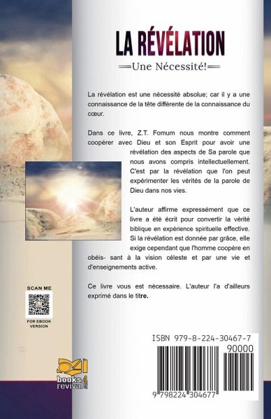 La révélation est une nécessité absolue; car la connaissance intellectuelle ou émotionnelle est différente de la connaissance spirituelle. Dans ce livre, Z.T. Fomum nous montre comment coopérer avec Dieu et son Esprit pour avoir une révélation des aspects de Sa parole que nous avons compris intellectuellement. C'est par la révélation que l'on peut expérimenter les vérités de la parole de Dieu dans nos vies. L'auteur affirme expressément que ce livre a été écrit pour convertir la vérité biblique en expérience spirituelle effective. Si la révélation est donnée par grâce, elle exige cependant que l'homme coopère en obéissant à la vision céleste et par une vie et d'enseignements active. Ce livre vous est nécessaire. L'auteur l'a d'ailleurs exprimé dans le titre.