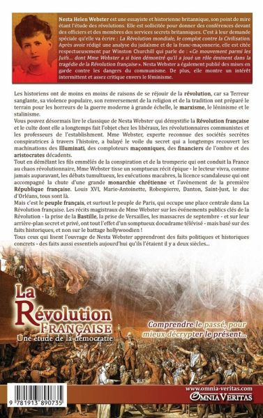 Les historiens ont de moins en moins de raisons de se réjouir de la révolution, car sa Terreur sanglante, sa violence populaire, son renversement de la religion et de la tradition ont préparé le terrain pour les horreurs de la guerre moderne à grande échelle, le marxisme, le léninisme et le stalinisme. Vous pouvez désormais lire le classique de Nesta Webster qui démystifie la Révolution française et le culte dont elle a longtemps fait l'objet chez les sentimentaux libéraux, les révolutionnaires communistes et les professeurs de l'establishment. Mme Webster, experte reconnue des sociétés secrètes conspiratrices à travers l'histoire, a balayé le voile du secret qui a longtemps recouvert les machinations des Illuminati, des comploteurs maçonniques, des financiers de l'ombre et des aristocrates décadents. Tout en démêlant les fils emmêlés de la conspiration et de la tromperie qui ont conduit la France au chaos révolutionnaire, Mme Webster tisse un somptueux récit épique - le lecteur vivra, comme jamais auparavant, les débats tumultueux, les exécutions macabres, la licence scandaleuse qui ont accompagné la chute d'une grande monarchie chrétienne et l'avènement de la première République française. Louis XVI, Marie-Antoinette, Robespierre, Danton, Saint-Just, le duc d'Orléans, tous sont là. Mais c'est le peuple français, et surtout le peuple de Paris, qui occupe une place centrale dans La Révolution française. Les récits magistraux de Mme Webster sur les événements publics clés de la Révolution - la prise de la Bastille, la prise de Versailles, les massacres de septembre - et sur leur arrière-plan secret et privé, ont tout l'effet d'un somptueux docudrame télévisé - mais un docudrame basé sur des faits historiques, et non sur le battage hollywoodien ! Tous ceux qui lisent La Révolution Française de Nesta Webster apprendront des faits politiques et historiques concrets - des faits aussi essentiels aujourd'hui qu'ils l'étaient il y a deux siècles - de manière simple, dans un récit historique classique qui se lit d'une traite.