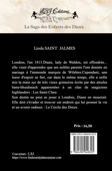 Londres, l'an 1813.Diane, lady de Waldon, est effondrée... elle vient d'apprendre que ses nobles parents l'ont donnée en mariage à l'immonde marquis de Wilshire. Cependant, une lueur d'espoir se fait, car dans le même temps, elle a enfin mis la main sur de très vieux grimoires écrits par des aïeules bana-bhuidseach apparentées à un clan de magiciens highlanders : Les Saint Clare. Son destin ne peut se jouer à Londres, Diane en mourrait. Elle doit s'évader et trouver cet endroit qui lui promet la vie et un avenir radieux : Le Cercle des Dieux.