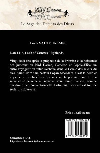 L'an 1416, Loch of Yarrows, Highlands. Vingt-deux ans après la prophétie de la Promise et la naissance des jumeaux du laird Darren, Cameron et Sophie-Élisa, un autre voyageur du futur s'échoue dans le Cercle des Dieux du clan Saint Clare : un certain Logan MacKlare. C'est la belle et impétueuse Sophie-Élisa qui se rend la première sur le lieu sacré et se présente au nouveau venu d'une manière, comme qui dirait, peu conventionnelle. Entre eux, l'entente est tout de suite. . . sulfureuse.