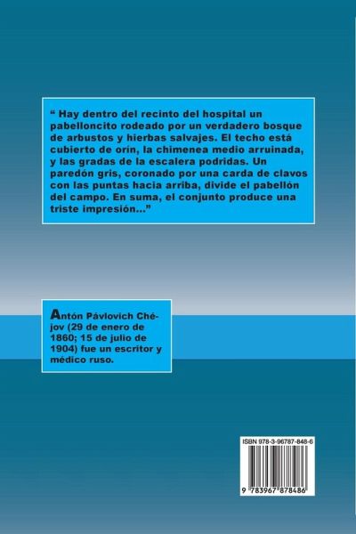 " Hay dentro del recinto del hospital un pabelloncito rodeado por un verdadero bosque de arbustos y hierbas salvajes. El techo está cubierto de orín, la chimenea medio arruinada, y las gradas de la escalera podridas. Un paredón gris, coronado por una carda de clavos con las puntas hacia arriba, divide el pabellón del campo. En suma, el conjunto produce una triste impresión..."