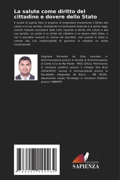Il nucleo di questo libro si propone di evidenziare brevemente il Diritto alla salute e la sua portata, analizzando la Costituzione federale e le poche leggi, nonché l'attuale concezione delle Corti riguardo al Diritto alla salute e alla sua portata. La salute è un diritto del cittadino e un dovere dello Stato, e non è possibile invocare la riserva del possibile, cioè quando lo Stato si sottrae alla sua responsabilità di garantire al cittadino un diritto costituzionale.