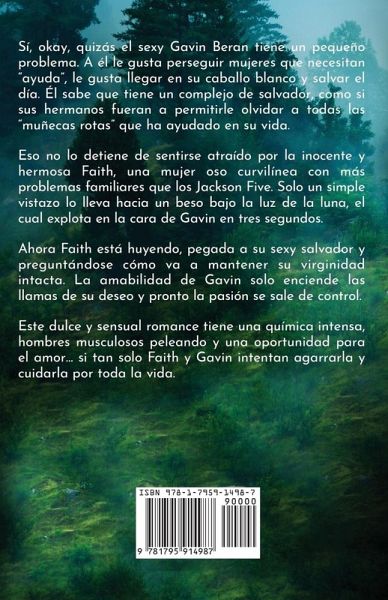 Sí, okay, quizás el sexy Gavin Beran tiene un pequeño problema. A él le gusta perseguir mujeres que necesitan "ayuda", le gusta llegar en su caballo blanco y salvar el día. Él sabe que tiene un complejo de salvador, como si sus hermanos fueran a permitirle olvidar a todas las "muñecas rotas" que ha ayudado en su vida. ¿¿ Eso no lo detiene de sentirse atraído por la inocente y hermosa Faith, una mujer oso curvilínea con más problemas familiares que los Jackson Five. Solo un simple vistazo lo lleva hacia un beso bajo la luz de la luna, el cual explota en la cara de Gavin en tres segundos. ¿¿ Ahora Faith está huyendo, pegada a su sexy salvador y preguntándose cómo va a mantener su virginidad intacta. La amabilidad de Gavin solo enciende las llamas de su deseo y pronto la pasión se sale de control. ¿¿ Este dulce y sensual romance tiene una química intensa, hombres musculosos peleando y una oportunidad para el amor... si tan solo Faith y Gavin intentan agarrarla y cuidarla por toda la vida.