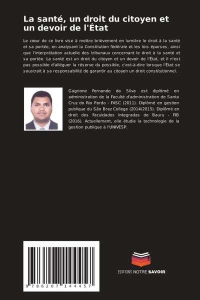 Le coeur de ce livre vise à mettre brièvement en lumière le droit à la santé et sa portée, en analysant la Constitution fédérale et les lois éparses, ainsi que l'interprétation actuelle des tribunaux concernant le droit à la santé et sa portée. La santé est un droit du citoyen et un devoir de l'État, et il n'est pas possible d'alléguer la réserve du possible, c'est-à-dire lorsque l'État se soustrait à sa responsabilité de garantir au citoyen un droit constitutionnel.