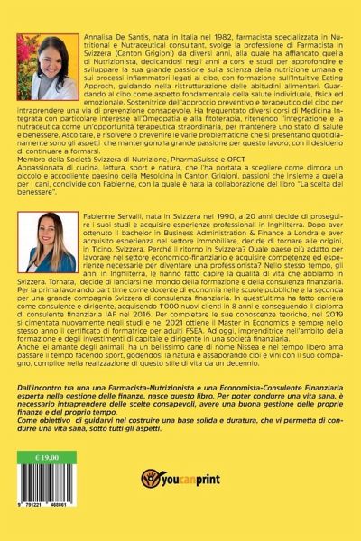 Mangiare sano, organizzare il proprio tempo e gestire bene le proprie finanze è il principale obiettivo di ognuno di noi, mirato a raggiungere il benessere ed investire sul bene più prezioso che abbiamo la nostra Salute. Questo libro nasce dalla collaborazione di una farmacista - nutrizionista e di una economista, il cui scopo è quello di stimolare a fare scelte migliori. Pagina dopo pagina, scoprirete come fare opportune scelte alimentari, gestire i pasti settimanali, i budget familiari, evitando di acquistare prodotti oltre che inutili anche dannosi, aiutando quindi a risparmiare. Un approccio positivo al cambiamento è fondamentale per perseguire gli obiettivi desiderati, vivendo un rapporto più intimo con la natura che ci circonda, sperimentando il benessere non solo attraverso un'alimentazione più salutare, ma anche attraverso un benessere psicologico con tecniche olistiche come la meditazione e la gratitudine. In questo libro troverete consigli per preservare la vostra salute, per migliorare la qualità di vita, indirizzandovi in scelte consapevoli, ritrovando il giusto equilibrio tra le cose che ci fanno stare bene e le cose che ci danno piacere.