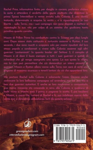 Rachel Price, informatrice finita per sbaglio in carcere, preferisce sfidare la sorte e attendere il verdetto della giuria piuttosto che diventare la prima Sposa Interstellare a venire inviata sulla Colonia. È una donna testarda, determinata a scoprire la verità – e a riguadagnarsi la sua libertà – sulla Terra… ma i suoi compagni non sono disposti a mettere a repentaglio la sua vita per colpa di un sistema che giudicano tanto primitivo quanto corrotto. Maxim di Prillon Prime ha combattuto contro lo Sciame per dieci lunghi anni. Dopo essere stato catturato e torturato assieme a Ryston, il suo secondo, i due sono riusciti a scappare solo per essere ripudiati dal loro stesso popolo e condannati a vivere sulla Colonia assieme agli altri guerrieri "contaminati". In quanto leader del Settore 3, il compito di Maxim è di dare il buon esempio a tutti i suoi guerrieri e quindi di richiedere che gli venga assegnata una sposa. La sua sposa lo rifiuta, ma lui non può permettere che ciò demoralizzi un intero pianeta di guerrieri. Maxim e Ryston allora vanno sulla Terra: non sarà di certo una prigione di massima sicurezza a tenerli lontani da ciò che appartiene loro. Ma portare Rachel sulla Colonia è solamente l’inizio. Devono anche convincere la loro bellissima compagna ad arrendersi non ad uno, ma a ben due guerrieri autoritari. E anche se loro riusciranno a conquistarla, una nuova minaccia sta crescendo in seno alla Colonia, e qualcuno di molti vicino a Maxim sarà il primo a pagarne lo scotto. E poi toccherà a Maxim, a meno che l’amore di Rachel e la sua indefessa ricerca della verità non si dimostrino abbastanza forti da poterlo salvare.