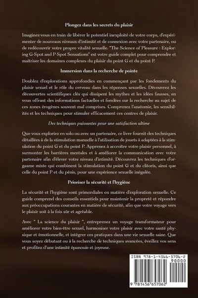 Plongez dans les secrets du plaisir Imaginez-vous en train de libérer le potentiel inexploité de votre corps, d'expérimenter de nouveaux niveaux d'intimité et de connexion avec votre partenaire, ou de redécouvrir votre propre vitalité sexuelle. "The Science of Pleasure : Exploring G-Spot and P-Spot Sensations" est votre guide complet pour comprendre et maîtriser les domaines complexes du plaisir du point G et du point P. Immersion dans la recherche de pointe Doublez d'explorations approfondies en commençant par les fondements du plaisir sexuel et le rôle du cerveau dans les réponses sexuelles. Découvrez les découvertes scientifiques clés qui dissipent les mythes et les idées fausses, en vous offrant des informations factuelles et fondées sur la recherche au sujet de ces zones érogènes souvent mal comprises. Comprenez l'anatomie, les sensibilités et les techniques pour stimuler efficacement ces centres de plaisir. Des techniques puissantes pour une satisfaction ultime Que vous exploriez en solo ou avec un partenaire, ce livre fournit des techniques détaillées â de la stimulation manuelle à l'utilisation de jouets â adaptées à la stimulation du point G et du point P. Apprenez à accroître votre plaisir personnel, à surmonter les barrières mentales et à améliorer la communication avec votre partenaire afin d'élever votre niveau d'intimité. Découvrez les techniques d'orgasme mixte qui combinent la stimulation du point G et du clitoris, ainsi que celle du point P et du pénis, pour une expérience sexuelle inégalée. Prioriser la sécurité et l'hygiène La sécurité et l'hygiène sont primordiales en matière d'exploration sexuelle. Ce guide comprend des conseils essentiels pour maintenir la propreté et répondre aux préoccupations courantes en matière de sécurité, afin que votre voyage vers le plaisir soit à la fois sûr et agréable. Avec " La science du plaisir ", entreprenez un voyage transformateur pour améliorer votre bien-être sexuel, harmoniser votre plaisir avec votre santé physique et émotionnelle, et intégrer ces pratiques dans une vie sexuelle saine. Que vous soyez débutant ou à la recherche de techniques avancées, éveillez vos sens et profitez d'une intimité épanouie et joyeuse.