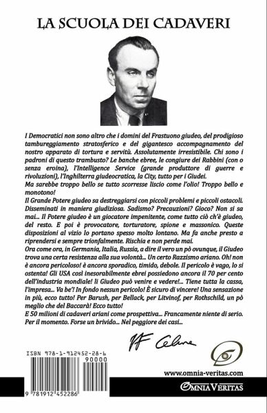I Democratici non sono altro che i domini del Frastuono giudeo, del prodigioso tambureggiamento stratosferico e del gigantesco accompagnamento del nostro apparato di tortura e servitù. Assolutamente irresistibile. Chi sono i padroni di questo trambusto? Le banche ebree, le congiure dei Rabbini (con o senza eroina), l'Intelligence Service (grande produttore di guerre e rivoluzioni), l'Inghilterra giudeocratica, la City, tutto per i Giudei. Ma sarebbe troppo bello se tutto scorresse liscio come l'olio! Troppo bello e monotono! Il Grande Potere giudeo sa destreggiarsi con piccoli problemi e piccoli ostacoli. Disseminati in maniera giudiziosa. Sadismo? Precauzioni? Gioco? Non si sa mai... Il Potere giudeo è un giocatore impenitente, come tutto ciò ch'è giudeo, del resto. E poi è provocatore, torturatore, spione e massonico. Queste disposizioni al vizio lo portano spesso molto lontano. Ma fa anche presto a riprendersi e sempre trionfalmente. Rischia e non perde mai. Ora come ora, in Germania, Italia, Russia, a dire il vero un pò ovunque, il Giudeo trova una certa resistenza alla sua volontà... Un certo Razzismo ariano. Oh! non è ancora pericoloso! è ancora sporadico, timido, debole. Il pericolo è vago, lo si ostenta! Gli USA così inesorabilmente ebrei possiedono ancora il 70 per cento dell'industria mondiale! li Giudeo può venire e vedere!... Tiene tutta la cassa, l'impresa... Va be'! In fondo nessun pericolo! È sicuro di vincere! Una sensazione in più, ecco tutto! Per Barush, per Bellack, per Litvinof, per Rothschild, un pò meglio che del Baccarà! Ecco tutto! E 50 milioni di cadaveri ariani come prospettiva... Francamente niente di serio. Per il momento. Forse un brivido... Nel peggiore dei casi...
