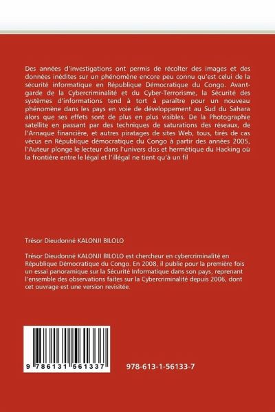 Des années d'investigations ont permis de récolter des images et des données inédites sur un phénomène encore peu connu qu'est celui de la sécurité informatique en République Démocratique du Congo. Avant-garde de la Cybercriminalité et du Cyber-Terrorisme, la Sécurité des systèmes d'informations tend à tort à paraître pour un nouveau phénomène dans les pays en voie de développement au Sud du Sahara alors que ses effets sont de plus en plus visibles. De la Photographie satellite en passant par des techniques de saturations des réseaux, de l'Arnaque financière, et autres piratages de sites Web, tous, tirés de cas vécus en République démocratique du Congo à partir des années 2005, l'Auteur plonge le lecteur dans l'univers clos et hermétique du Hacking où la frontière entre le légal et l'illégal ne tient qu'à un fil