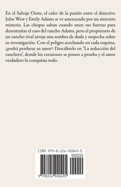 En el Salvaje Oeste, el calor de la pasión entre el detective John West y Emily Adams se ve amenazado por un siniestro misterio. Las chispas saltan cuando unen sus fuerzas para desentrañar el caso del rancho Adams, pero el propietario de un rancho rival arroja una sombra de duda y sospecha sobre su investigación. Con el peligro acechando en cada esquina, ¿podrá perdurar su amor? Descúbrelo en "La seducción del ranchero", donde los corazones se ponen a prueba y el amor verdadero lo conquista todo.