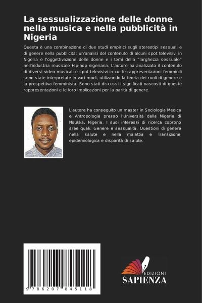 Questa è una combinazione di due studi empirici sugli stereotipi sessuali e di genere nella pubblicità: un'analisi del contenuto di alcuni spot televisivi in Nigeria e l'oggettivazione delle donne e i temi della ¿larghezza sessuale¿ nell'industria musicale Hip-hop nigeriana. L'autore ha analizzato il contenuto di diversi video musicali e spot televisivi in cui le rappresentazioni femminili sono state interpretate in vari modi, utilizzando la teoria dei ruoli di genere e la prospettiva femminista. Sono stati discussi i significati nascosti di queste rappresentazioni e le loro implicazioni per la parità di genere.
