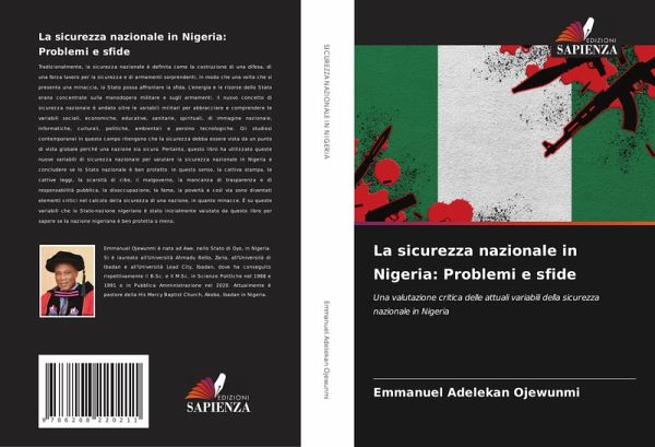 Tradizionalmente, la sicurezza nazionale è definita come la costruzione di una difesa, di una forza lavoro per la sicurezza e di armamenti sorprendenti, in modo che una volta che si presenta una minaccia, lo Stato possa affrontare la sfida. L'energia e le risorse dello Stato erano concentrate sulla manodopera militare e sugli armamenti. Il nuovo concetto di sicurezza nazionale è andato oltre le variabili militari per abbracciare e comprendere le variabili sociali, economiche, educative, sanitarie, spirituali, di immagine nazionale, informatiche, culturali, politiche, ambientali e persino tecnologiche. Gli studiosi contemporanei in questo campo ritengono che la sicurezza debba essere vista da un punto di vista globale perché una nazione sia sicura. Pertanto, questo libro ha utilizzato queste nuove variabili di sicurezza nazionale per valutare la sicurezza nazionale in Nigeria e concludere se lo Stato nazionale è ben protetto. In questo senso, la cattiva stampa, le cattive leggi, la scarsità di cibo, il malgoverno, la mancanza di trasparenza e di responsabilità pubblica, la disoccupazione, la fame, la povertà e così via sono diventati elementi critici nel calcolo della sicurezza di una nazione, in quanto minacce. È su queste variabili che lo Stato-nazione nigeriano è stato inizialmente valutato da questo libro per sapere se la nazione nigeriana è ben protetta o meno.