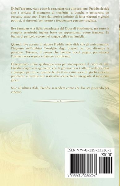 In quanto secondogenito di un visconte, Freddie Rosemount è consapevole che, qualunque cosa realizzi nella vita, non sarà il primo membro della sua famiglia ad averla ottenuta. Di bell'aspetto, ricco e con la casa paterna a disposizione, Freddie decide che è arrivato il momento di trasferirsi a Londra e assicurarsi un successo tutto suo. Preso dal vortice infinito di feste eleganti e giochi politici, si ritroverà ben presto a frequentare persone sbagliate. Il Consiglio degli Scapoli è un club per giovani uomini che desiderano lasciare un segno nella società londinese, e l'unico modo per potervi accedere è superare una serie di sfide segrete, una più scandalosa dell'altra. Eve Saunders è la figlia beneducata del Duca di Strathmore, ma sotto la compita esteriorità inglese batte un appassionato cuore francese. La brama di pericolo scorre nel sangue della sua famiglia. Quando Eve accetta di aiutare Freddie nelle sfide che gli assicureranno l'ingresso nell'ambìto Consiglio, tra loro divampa la passione. Tuttavia, il prezzo che Freddie dovrà pagare per vincere l'ultima prova segreta è davvero esorbitante. Dopo che il padre, furioso per il suo comportamento, lo priva dell'accesso a qualunque forma di sostentamento finanziario, la vita di Freddie precipita in fretta e, ben presto, il giovane si rende conto del modo terribile in cui ha trattato la ragazza che ama. Determinato a fare qualunque cosa per riconquistare il cuore di Eve, Freddie scopre con sgomento che la giovane non è affatto seduta a casa a piangere per lui, e, quando lei dà il via a una serie di giochi erotici e pericolosi, a Freddie non resta altra scelta che fronteggiarla al suo stesso gioco. Solo all'ultima sfida, Freddie si renderà conto che Eve sta giocando per vincere.
