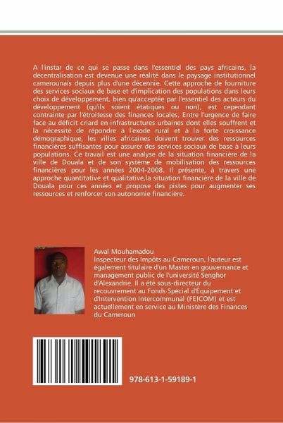 A l'instar de ce qui se passe dans l'essentiel des pays africains, la décentralisation est devenue une réalité dans le paysage institutionnel camerounais depuis plus d'une décennie. Cette approche de fourniture des services sociaux de base et d'implication des populations dans leurs choix de développement, bien qu'acceptée par l'essentiel des acteurs du développement (qu'ils soient étatiques ou non), est cependant contrainte par l'étroitesse des finances locales. Entre l'urgence de faire face au déficit criard en infrastructures urbaines dont elles souffrent et la nécessité de répondre à l'exode rural et à la forte croissance démographique, les villes africaines doivent trouver des ressources financières suffisantes pour assurer des services sociaux de base à leurs populations. Ce travail est une analyse de la situation financière de la ville de Douala et de son système de mobilisation des ressources financières pour les années 2004-2008. Il présente, à travers une approche quantitative et qualitative,la situation financière de la ville de Douala pour ces années et propose des pistes pour augmenter ses ressources et renforcer son autonomie financière.