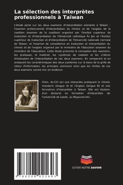 L'étude porte sur les deux examens d'interprétation existants à Taïwan : l'examen professionnel d'interprétation du chinois et de l'anglais de la coalition (examen de la coalition) organisé par l'Institut supérieur de traduction et d'interprétation de l'Université catholique Fu Jen et l'Institut supérieur de traduction et d'interprétation de l'Université nationale normale de Taïwan, et l'examen de compétence en traduction et interprétation du chinois et de l'anglais organisé par le ministère de l'éducation (examen du ministère de l'éducation). Cette étude présente la conception des examens, les pratiques, le matériel, les systèmes de notation et les critères d'évaluation de l'interprétation de ces deux examens. En comparant et en analysant les caractéristiques des deux systèmes sur la base de la grille de retour d'information, les principes communs ainsi que les limites de ces deux examens seront mis en évidence.