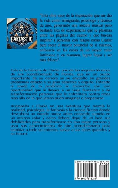 Esta es la historia de Clarke, uno de los mejores técnicos de aire acondicionado de Florida, que en un punto importante de su carrera se ve envuelto en grandes problemas debido a su gran soberbia y orgullo. Estando al borde de la perdición se encuentra con una oportunidad que le llevara a un viaje fantástico y de transformación personal que le enfrentara contra retos más allá de lo que jamás pudo imaginar o prepararse. Acompaña a Clarke en una aventura que mezcla la realidad, psicología, la fantasía y la ciencia ficción donde descubrirá un mundo nunca antes conocido sumido en un intenso calor y como deberá dejar de un lado sus debilidades para transformarse en una mejor persona y usar sus conocimientos de aire acondicionado para cambiar a todo su entorno, salvar a sus seres queridos y su futuro. "Esta obra nace de la inspiración que me dio la vida como inmigrante, psicólogo y técnico de aire, generando una mezcla inusual pero bastante rica de experiencias que se plasman entre las páginas del cuento y que buscan inspirar a personas con rasgos como Clarke para sacar el mayor potencial de sí mismos, enfocarse en las cosas de un mayor valor intrínseco y en resumen, lograr llegar a ser más felices". Manuel A. Ruiz Sosa.