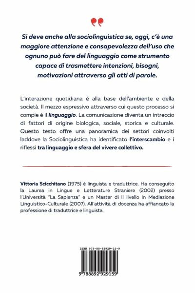 L'interazione quotidiana è alla base dell'ambiente e della società. Il mezzo espressivo attraverso cui questo processo si compie è il linguaggio. La comunicazione diventa un intreccio di fattori di origine biologica, sociale, storica e culturale. Questo testo offre una panoramica dei settori coinvolti laddove la Sociolinguistica ha identificato l'interscambio e i riflessi tra linguaggio e sfera del vivere collettivo.