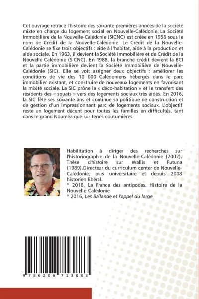 Cet ouvrage retrace l'histoire des soixante premières années de la société mixte en charge du logement social en Nouvelle-Calédonie. La Société Immobilière de la Nouvelle-Calédonie (SICNC) est créée en 1956 sous le nom de Crédit de la Nouvelle-Calédonie. Le Crédit de la Nouvelle-Calédonie se fixe trois objectifs : aide à l'habitat, aide à la production et aide sociale. En 1963, il devient la Société Immobilière et de Crédit de la Nouvelle-Calédonie (SICNC). En 1988, la branche crédit devient la BCI et la partie immobilière devient la Société Immobilière de Nouvelle-Calédonie (SIC). Elle se voit assigner deux objectifs : améliorer les conditions de vie des 10 000 Calédoniens hébergés dans le parc immobilier existant, et construire de nouveaux logements en favorisant la mixité sociale. La SIC prône la « déco-habitation » et le transfert des résidents des « squats » vers des logements sociaux très aidés. En 2016, la SIC fête ses soixante ans et continue sa politique de construction et de gestion d'un impressionnant parc de logements sociaux. L'objectif reste un logement décent pour toutes les familles en difficultés, tant dans le grand Nouméa que sur terres coutumières.