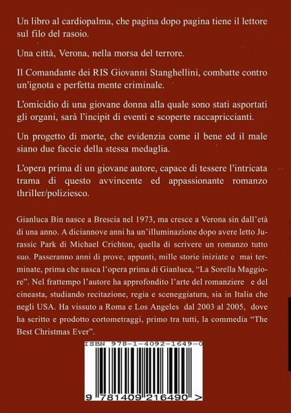 La Sorella Maggiore è un romanzo giallo/thriller dal carattere americano ma dai paesaggi e personaggi Italiani. Una storia avvincente ambientata a Verona, la città dell'amore, teatro di omicidi efferati; ma la realtà non è sempre quella che sembra. Il comandante Stanghellini dei RIS, il Reparto Indagini Scientifiche dei Carabinieri, è sulle orme dell'assassino. Si vis pacem para bellum, dicevano i latini, se vuoi la pace prepara la guerra.