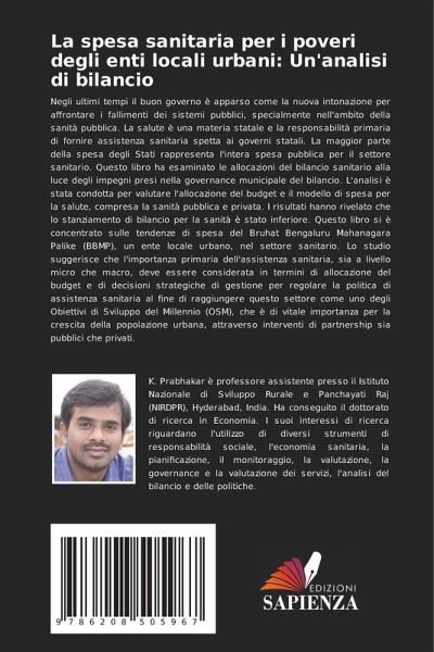 Negli ultimi tempi il buon governo è apparso come la nuova intonazione per affrontare i fallimenti dei sistemi pubblici, specialmente nell'ambito della sanità pubblica. La salute è una materia statale e la responsabilità primaria di fornire assistenza sanitaria spetta ai governi statali. La maggior parte della spesa degli Stati rappresenta l'intera spesa pubblica per il settore sanitario. Questo libro ha esaminato le allocazioni del bilancio sanitario alla luce degli impegni presi nella governance municipale del bilancio. L'analisi è stata condotta per valutare l'allocazione del budget e il modello di spesa per la salute, compresa la sanità pubblica e privata. I risultati hanno rivelato che lo stanziamento di bilancio per la sanità è stato inferiore. Questo libro si è concentrato sulle tendenze di spesa del Bruhat Bengaluru Mahanagara Palike (BBMP), un ente locale urbano, nel settore sanitario. Lo studio suggerisce che l'importanza primaria dell'assistenza sanitaria, sia a livello micro che macro, deve essere considerata in termini di allocazione del budget e di decisioni strategiche di gestione per regolare la politica di assistenza sanitaria al fine di raggiungere questo settore come uno degli Obiettivi di Sviluppo del Millennio (OSM), che è di vitale importanza per la crescita della popolazione urbana, attraverso interventi di partnership sia pubblici che privati.