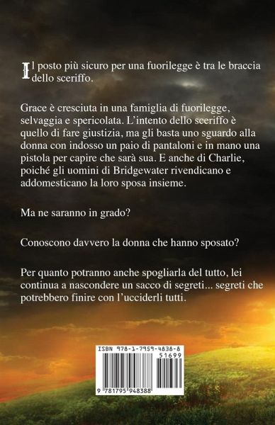 Il posto più sicuro per una fuorilegge è tra le braccia dello sceriffo. Grace è cresciuta in una famiglia di fuorilegge, selvaggia e spericolata. L’intento dello sceriffo è quello di fare giustizia, ma gli basta uno sguardo alla donna con indosso un paio di pantaloni e in mano una pistola per capire che sarà sua. E anche di Charlie, poiché gli uomini di Bridgewater rivendicano e addomesticano la loro sposa insieme. Ma ne saranno in grado? Conoscono davvero la donna che hanno sposato? Per quanto potranno anche spogliarla del tutto, lei continua a nascondere un sacco di segreti... segreti che potrebbero finire con l’ucciderli tutti.
