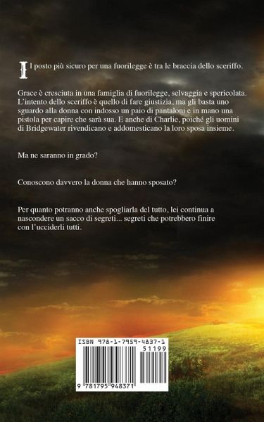 Il posto più sicuro per una fuorilegge è tra le braccia dello sceriffo. Grace è cresciuta in una famiglia di fuorilegge, selvaggia e spericolata. L’intento dello sceriffo è quello di fare giustizia, ma gli basta uno sguardo alla donna con indosso un paio di pantaloni e in mano una pistola per capire che sarà sua. E anche di Charlie, poiché gli uomini di Bridgewater rivendicano e addomesticano la loro sposa insieme. Ma ne saranno in grado? Conoscono davvero la donna che hanno sposato? Per quanto potranno anche spogliarla del tutto, lei continua a nascondere un sacco di segreti... segreti che potrebbero finire con l’ucciderli tutti.