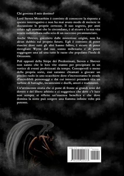 Chi governa il mio destino? Lord Steven Mesatrhim è convinto di conoscere la risposta a questo interrogativo e non ha mai avuto modo di mettere in discussione le proprie certezze. Il suo segreto è al sicuro e la sua vita scorre indisturbata sulla scia di un successo preannunciato. Anche Shrever, guerriero dalle misteriose origini, non ha alcun dubbio sul proprio futuro. E' sicuro di poter risvegliare Wyrm dal suo sonno millenario e di poter soggiogare una ad una tutte le razze che popolano l'isola di Orizzonte. Steven e Shrever saranno presto chiamati a giocare un preciso ruolo in uno scacchiere dove s'incroceranno le strade d'incredibili personaggi e dai cui intrecci prenderà vita un turbine di battaglie, incantesimi e duelli, amori e tradimenti. Un'avvincente storia che ci suggerisce che dove c'è luce non sempre si riflette un'essenza benefica e che dove domina la notte può sorgere una fiamma infinite volte più potente.