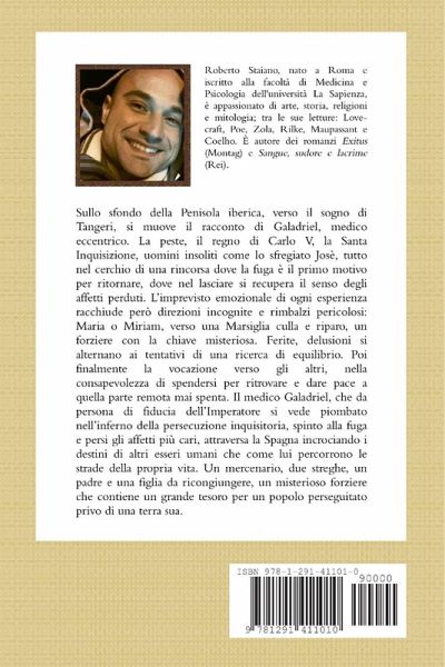 Aonia edizioni. Sullo sfondo della Penisola iberica si muove il racconto di Galadriel, medico eccentrico. La peste, il regno di Carlo V, la Santa Inquisizione, tutto nel cerchio di una rincorsa dove la fuga è il primo motivo per ritornare, dove nel lasciare si recupera il senso degli affetti perduti. L'imprevisto emozionale di ogni esperienza racchiude però direzioni incognite e rimbalzi pericolosi: Maria o Miriam, verso una Marsiglia culla e riparo, un forziere con la chiave misteriosa. Ferite, delusioni si alternano ai tentativi di una ricerca di equilibrio. Galadriel, che da persona di fiducia dell'Imperatore si vede piombato nell'inferno della persecuzione inquisitoria, spinto alla fuga e persi gli affetti più cari, attraversa la Spagna incrociando i destini di altri esseri umani che come lui percorrono le strade della propria vita. Un mercenario, due streghe, un padre e una figlia da ricongiungere, un misterioso forziere che contiene un grande tesoro per un popolo perseguitato privo di una terra sua.