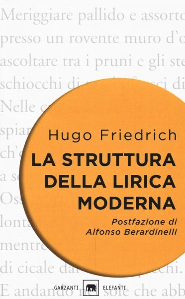 Il grande problema di molti lettori di fronte alla poesia contemporanea si può riassumere nella frase: "Questa poesia non la capisco". In questo manuale Hugo Friedrich offre tutti gli strumenti per accostarsi alla poesia contemporanea, al di là del problema della comprensione. Partendo da Rimbaud e Mallarmè (con il nume di Baudelaire sullo sfondo), passando per Prèvert e Eliot, Benn e Garcia Lorca, per arrivare ai nostri Quasimodo, Montale e Ungaretti, segue lo sviluppo e la diffusione della nuova lirica, ne analizza le caratteristiche principali e le differenze della lirica tradizionale.