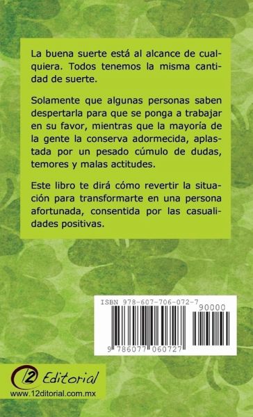 La buena suerte está al alcance de cualquiera. Todos tenemos la misma cantidad de suerte. Solamente que algunas personas saben despertarla para que se ponga a trabajar en su favor, mientras que la mayoría de la gente la conserva adormecida, aplastada por un pesado cúmulo de dudas, temores y malas actitudes. Este libro te dirá cómo revertir la situación para transformarte en una persona afortunada, consentida por las casualidades positivas.