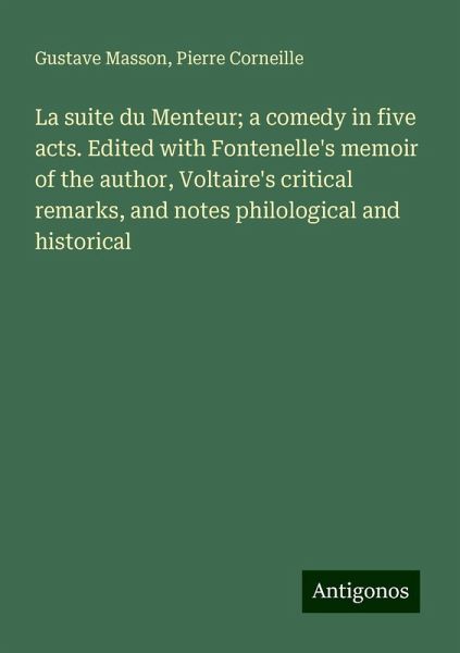 La suite du Menteur; a comedy in five acts. Edited with Fontenelle's memoir of the author, Voltaire's critical remarks, and notes philological and historical - Masson, Gustave; Corneille, Pierre