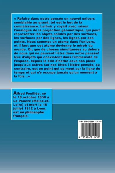 Refaire dans notre pensée un nouvel univers semblable au grand, tel est le but de la connaissance. Leibniz y voyait avec raison l'analogue de la projection géométrique, qui peut représenter les objets solides par des surfaces, les surfaces par des lignes, les lignes par des points. Nous sommes un atome dans l'univers, et il faut que cet atome devienne le miroir du monde. Or, que de choses simultanées au dehors de nous qui ne peuvent l'être dans notre pensée! Que d'objets qui coexistent dans l'immensité de l'espace, depuis le brin d'herbe sous nos pieds jusqu'aux astres sur nos têtes ! Notre pensée, au contraire, est un point qui se meut sur la ligne du temps et qui n'y occupe jamais qu'un moment à la fois...
