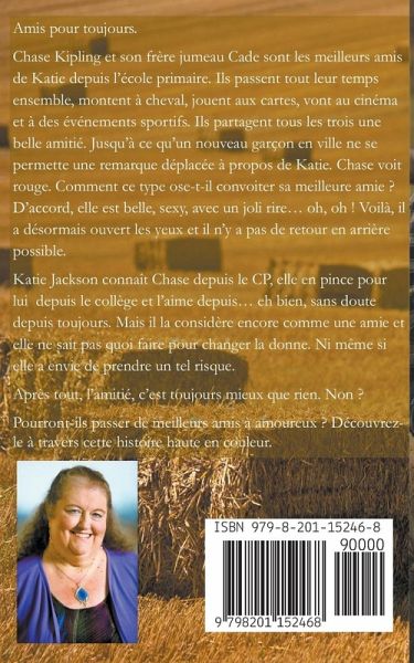 Amis pour toujours. Chase Kipling et son frère jumeau Cade sont les meilleurs amis de Katie depuis l'école primaire. Ils passent tout leur temps ensemble, montent à cheval, jouent aux cartes, vont au cinéma et à des événements sportifs. Ils partagent tous les trois une belle amitié. Jusqu'à ce qu'un nouveau garçon en ville ne se permette une remarque déplacée à propos de Katie. Chase voit rouge. Comment ce type ose-t-il convoiter sa meilleure amie ? D'accord, elle est belle, sexy, avec un joli rire… oh, oh ! Voilà, il a désormais ouvert les yeux et il n'y a pas de retour en arrière possible. Katie Jackson connaît Chase depuis le CP, elle en pince pour lui depuis le collège et l'aime depuis… eh bien, sans doute depuis toujours. Mais il la considère encore comme une amie et elle ne sait pas quoi faire pour changer la donne. Ni même si elle a envie de prendre un tel risque. Après tout, l'amitié, c'est toujours mieux que rien. Non ? Pourront-ils passer de meilleurs amis à amoureux ? Découvrez-le à travers cette histoire haute en couleur.