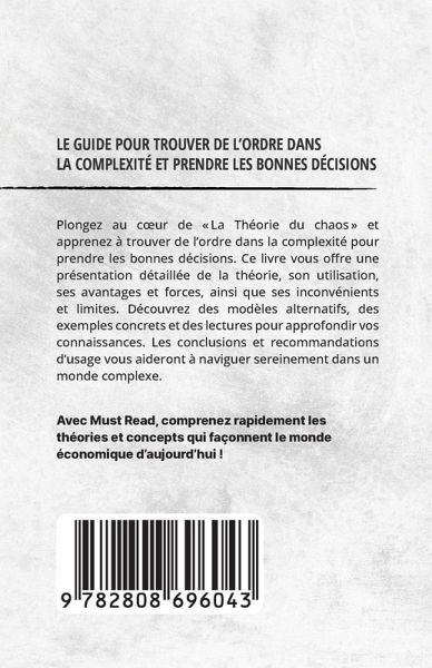 Plongez au c¿ur de "La Théorie du chaos" et apprenez à trouver de l'ordre dans la complexité pour prendre les bonnes décisions. Ce livre vous offre une présentation détaillée de la théorie, son utilisation, ses avantages et forces, ainsi que ses inconvénients et limites. Découvrez des modèles alternatifs, des exemples concrets et des lectures pour approfondir vos connaissances. Les conclusions et recommandations d'usage vous aideront à naviguer sereinement dans un monde complexe.