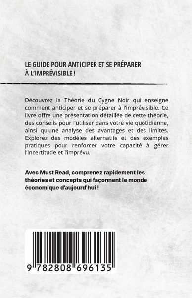 Découvrez la Théorie du Cygne Noir qui enseigne comment anticiper et se préparer à l'imprévisible. Ce livre offre une présentation détaillée de cette théorie, des conseils pour l'utiliser dans votre vie quotidienne, ainsi qu'une analyse des avantages et des limites. Explorez des modèles alternatifs et des exemples pratiques pour renforcer votre capacité à gérer l'incertitude et l'imprévu.