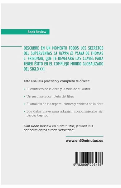 en50MINUTOS.es te ofrece un análisis rápido y conciso de La Tierra es plana de Thomas L. Friedman, un verdadero superventas que cuenta con varios millones de ejemplares vendidos en todo el mundo. Si quieres descubrir en un tiempo récord cómo mantener la competitividad en un mercado global en el que las fronteras parecen difuminarse, ¡en50Minutos.es te lo pone fácil! ¡Comienza hoy mismo a ampliar tus horizontes con en50MINUTOS.es! En tan solo 50 minutos, este libro te aportará: ¿ Todo lo que necesitas saber sobre el «aplanamiento» de la Tierra y las diez fuerzas aplanadoras que, según Friedman, han contribuido a la homogenización del planeta ¿ Las claves para cambiar de mentalidad y mantener una posición fuerte que te permita hacer frente al nuevo mercado global, altamente competitivo y en constante cambio ¿ Las herramientas necesarias para que, tras conocer los argumentos que sostienen sus defensores y sus detractores, forjes un punto de vista crítico sobre el controvertido pensamiento de Friedman Sobre en50MINUTOS.es Book Review en50MINUTOS.es te ofrece análisis rápidos y prácticos de grandes superventas que te ayudarán a triunfar tanto en el ámbito profesional como en la esfera privada. Nuestras obras sintetizan los libros de forma completa y ágil, para que puedas sacarles todo el jugo sin perder ni un minuto. ¿A qué esperas para marcar la diferencia? Con Book Review en50MINUTOS.es, ¡atrévete a pensar en grande!