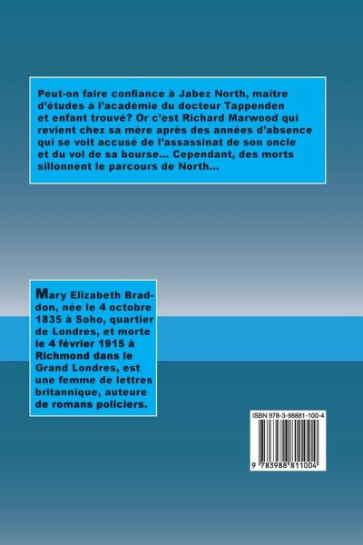 Peut-on faire confiance à Jabez North, maître d'études à l'académie du docteur Tappenden et enfant trouvé? Or c'est Richard Marwood qui revient chez sa mère après des années d'absence qui se voit accusé de l'assassinat de son oncle et du vol de sa bourse... Cependant, des morts sillonnent le parcours de North...