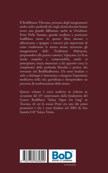 Il Buddhismo Tibetano, una delle più importanti forme del Buddhismo Mahyana conosciuta anche con il nome di Vajrayana, presenta insegnamenti complessi e molto profondi che negli ultimi decenni hanno avuto una grande diffusione anche in Occidente. Peter Della Santina, grande studioso e praticante del Buddhismo Tibetano riesce in questo libro intenso e affascinante a spiegare i concetti più importanti del Vajrayana in modo semplice e comprensibile anche ai principianti senza rinunciare a far apparire tutta la complessità della profonda filosofia e pratica buddhista. Un testo basilare e utile a chiunque è interessato alla Spiritualità Buddhista che contiene anche degli esercizi di Meditazioni da poter praticare per conto proprio.