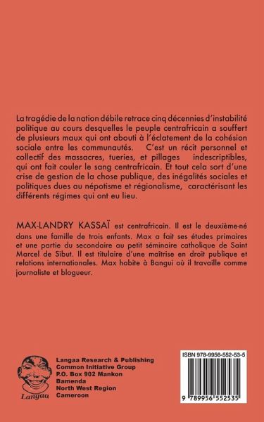 La tragédie de la nation débile retrace cinq décennies d'instabilité politique au cours desquelles le peuple centrafricain a souffert de plusieurs maux qui ont abouti à l'éclatement de la cohésion sociale entre les communautés.