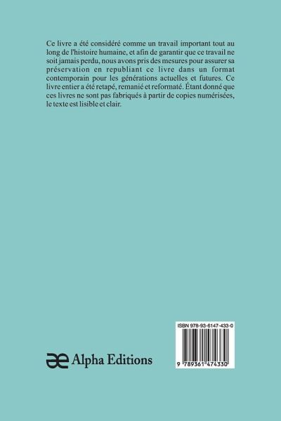 La troisième jeunesse de Madame Prune, un livre classique, a été considéré comme important tout au long de l'histoire de l'humanité, et pour que cet ouvrage ne soit jamais oublié, chez Alpha Editions, nous avons fait des efforts pour sa préservation en rééditant ce livre dans un format moderne pour les générations présentes et futures. Tout ce livre a été reformaté, retapé et conçu. Ces livres ne sont pas constitués de copies numérisées de leur ¿uvre originale et le texte est donc clair et lisible.