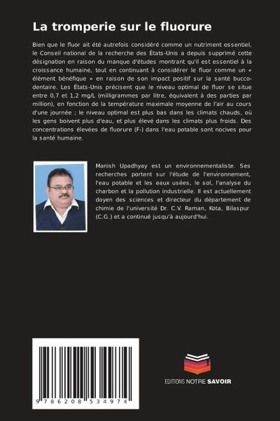 Bien que le fluor ait été autrefois considéré comme un nutriment essentiel, le Conseil national de la recherche des États-Unis a depuis supprimé cette désignation en raison du manque d'études montrant qu'il est essentiel à la croissance humaine, tout en continuant à considérer le fluor comme un « élément bénéfique » en raison de son impact positif sur la santé bucco-dentaire. Les États-Unis précisent que le niveau optimal de fluor se situe entre 0,7 et 1,2 mg/L (milligrammes par litre, équivalent à des parties par million), en fonction de la température maximale moyenne de l'air au cours d'une journée ; le niveau optimal est plus bas dans les climats chauds, où les gens boivent plus d'eau, et plus élevé dans les climats plus froids. Des concentrations élevées de fluorure (F-) dans l'eau potable sont nocives pour la santé humaine.