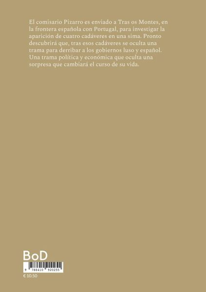 El comisario Pizarro es enviado a Tras os Montes, en la frontera española con Portugal, para investigar la aparición de cuatro cadáveres en una sima. Pronto descubrirá que, tras esos cadáveres se oculta una trama para derribar a los gobiernos luso y español. Una trama política y económica que oculta una sorpresa que cambiará el curso de su vida.