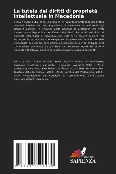Il libro è diviso in due parti. La prima parte riguarda la protezione dei diritti di proprietà intellettuale nella Repubblica di Macedonia in conformità agli standard europei. La seconda parte riguarda la protezione del diritto d'autore nella Repubblica del Kosovo del 2011. La tutela dei diritti di proprietà intellettuale è importante non solo per il titolare dell'idea, ma anche per la società nel suo complesso. La tutela dei diritti di proprietà intellettuale può essere considerata un prerequisito per lo sviluppo della cooperazione economica tra gli Stati. La protezione legale dei diritti di proprietà intellettuale significa la regolamentazione legale di tali diritti.