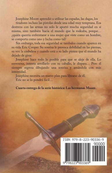 Josephine Moore aprendió a utilizar las espadas, las dagas, los tiradores incluso las pistolas desde una edad muy temprana. Esa destreza con las armas no solo le aportó mucha seguridad en sí misma, sino también hacia el mundo que la rodeaba, porque... ¿quién querría enfrentarse a una mujer que viste como un hombre, se comporta como uno y lucha como tal? Sin embargo, toda esa seguridad se tambalea cuando aparece en su vida Eric Cooper. Su sonrisa le provoca debilidad en las piernas, su voz la embelesa y cuando está a su lado piensa que el mundo ha dejado de girar. Josephine hace todo lo posible para que se aleje de ella. Lo envenena, intenta arrollarlo con su caballo, le dispara... Pero él siempre regresa dibujando una sonrisa y amándola con más intensidad. Josephine necesita un nuevo plan para librarse de él. Eric no se lo pondrá fácil...