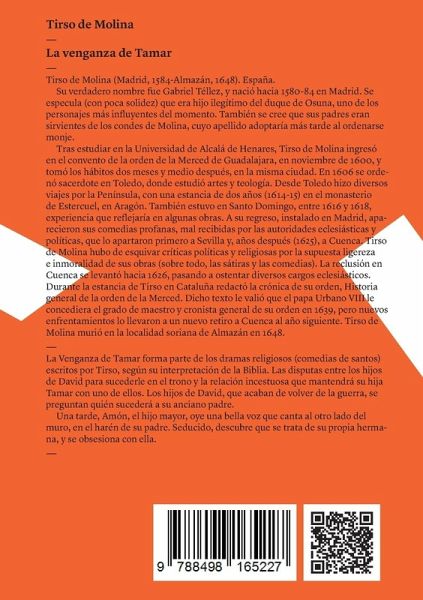 La Venganza de Tamar forma parte de los dramas religiosos (comedias de santos) escritos por Calderón, según su interpretación de la Biblia. Las disputas entre los hijos de David para sucederle en el trono y la relación incestuosa que mantendrá su hija Tamar con uno de ellos. Los hijos de David, que acaban de volver de la guerra, se preguntan quién sucederá a su anciano padre. Una tarde, Amón, el hijo mayor, oye una bella voz que canta al otro lado del muro, en el harén de su padre. Seducido, descubre que se trata de su propia hermana, y se obsesiona con ella.