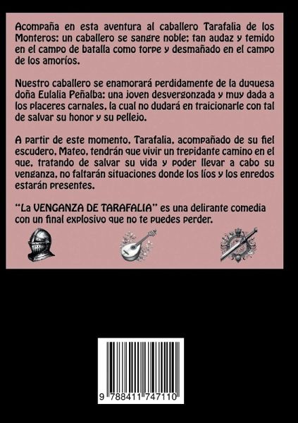 Acompaña en esta aventura Tarafalia de los Monteros; un caballero de sangre noble, tan temido en el campos de batalla, como torpe y desmañado en el tema de amoríos. Nuestro caballero se enamorará perdidamente de la duquesa, doña Eulalia Peñalba, una joven desvergonzada y algo dada a los placeres carnales que no dudará en traicionarle con tal de salvar su honor. A partir de aquí, Tarafalia, en compañía de su fiel escudero Mateo, tendrán que vivir un trepidante camino repleto en líos y de enredos para salvar su vida y poder vengar su honor. La venganza de Tarafalia es una delirante comedia con un final lleno de enredos y desdichas que no te puedes perder-