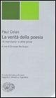 A Paul Celan, nel 1960, viene conferito il Premio Büchner. In quella occasione tiene un discorso dal titolo "II meridiano", qui raccolto insieme a tutti gli scritti in prosa. Celan si prova a dire il significato della poesia, e trova questa immagine: poesia non è alcun luogo concreto sulla carta geografica dell'immaginario e della mente dell'uomo. Essa è, piuttosto, come un meridiano: una linea ad un tempo verissima e inesistente che indica una direzione attraverso molti territori. Su questa linea a ciascuno è data la possibilità di tracciare il proprio cammino verso quel sapere e quel sentire che appaiono sempre più lontani da chi è assediato dalla civiltà del rumore e del fatuo, e in essa si perde.