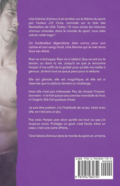 Une histoire d'amour à en tomber, sur le thème du sport, par l'auteur J.H. Croix, nommée sur la liste des Bestsellers de USA Today ! Si vous aimez les histoires d'amour chaudes, dans le monde du sport, vous allez adorer cette saga ! Un footballeur légendaire, bien connu pour son calme et son sang-froid. Une femme qui le met dans tous ses états. Rien ne m'échappe. Rien ne m'atteint. Que ce soit sur le terrain, ou dans la vie. Jusqu'à ce que je rencontre Harper. Il me suffit de la goûter pour qu'elle me mette à genoux. Je ferai tout ce que je peux pour la séduire. Elle est géniale, elle est magnifique, et elle est si réservée que la séduire devient un challenge. Mais elle n'est pas intéressée. Peu de choses l'impressionnent - ni le fait que je sois une star mondiale du foot, ni l'argent. Elle fuit quelque chose. Je sais être patient. J'ai l'habitude de ce jeu. Mais avec elle, ce n'est pas un jeu. Pas avec Harper, pas alors qu'elle est tout ce que j'ai toujours voulu. Protéger un goal, c'est facile. Mais un cur, c'est une autre affaire... *Une histoire d'amour dans le monde du sport, en un tome.