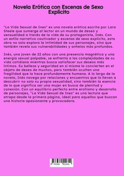 "La Vida Sexual de Ines" es una novela erótica escrita por Lara Steele que sumerge al lector en un mundo de deseo y sensualidad a través de la vida de su protagonista, Inés. Con un estilo narrativo cautivador y escenas de sexo explícito, esta obra no solo explora la intimidad de sus personajes, sino que también revela sus vulnerabilidades y anhelos más profundos. Inés, una joven de 22 años con una presencia magnética y una energía sexual palpable, se enfrenta a las complejidades de su vida cotidiana mientras busca satisfacer sus deseos más íntimos. Su belleza y seguridad en sí misma la convierten en el objeto de deseo de muchos, pero también ocultan una fragilidad que la hace profundamente humana. A lo largo de la novela, Inés navega por relaciones y encuentros que la llevan a descubrir no solo su propia sexualidad, sino también la esencia de lo que significa ser una mujer en busca de plenitud y conexión. Con un equilibrio perfecto entre erotismo y desarrollo de personajes, "La Vida Sexual de Ines" es una lectura que atrapa desde la primera página, ideal para aquellos que buscan una historia apasionante y provocadora.